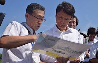 8月19日,日本鹿儿岛县知事三反园训知事观察九州电力公司川内核电站周边地域。确认变乱发作时出亡路途和病院等环境,和本地住民互换定见。